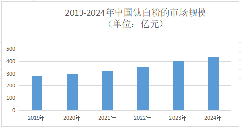 2024年中國鈦白粉的市場規模約為432億元,預計2029年鈦白粉市場規模將達到460億元,年均複合增長率1.1%。不過,隨著新能源等新興領域對鈦白粉需求的快速增長,2029年之後市場規模將快速增長。
