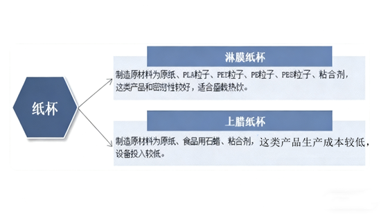 紙杯主要分為淋膜紙杯和上臘紙杯兩大類。淋膜紙杯以原紙、PLA 粒子、PET 粒子、PE 粒子、PBS 粒子及粘合劑為原材料,具備優良的阻隔性和密封性,是盛載熱飲的理想選擇;上臘紙杯則採用原紙、食品用石蠟和粘合劑製造,生產成本與設備投入相對較低。