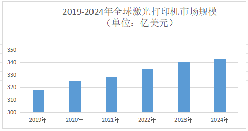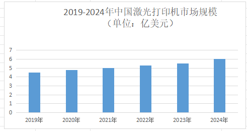 中國激光印表機市場規模占全球18%,2025年市場規模達48.63億元(約合6.9億美元)。儘管2021年受疫情與無紙化辦公影響市場規模同比下滑14.92%,但2022年即回暖至322.7億元,同比增長3.5%,顯示出較強韌性。預計未來幾年,隨著數位化轉型與辦公自動化推進,市場規模將持續增長。