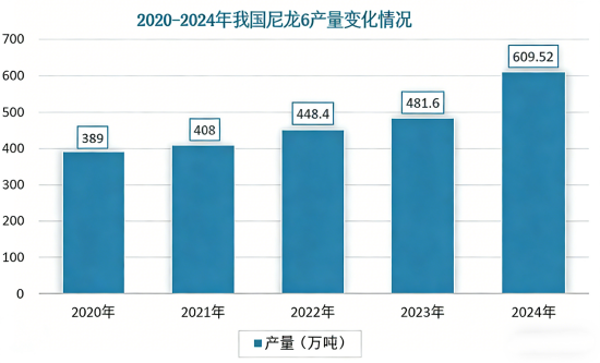 在雙輪驅動下,尼龍 6 產量從 2020 年的 389 萬噸增長至 2024 年的 609.52 萬噸,年均複合增長率約 11.88%,為己內醯胺行業提供了強勁且持續的需求保障。2025 年我國己內醯胺需求量達 681.7 萬噸,同比增長 5.1%,下游需求雖保持增長,但增速較此前出現明顯放緩。