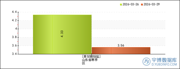 除草劑產品報價預警:山東省寒亭區草甘膦銨鹽價格4周下跌17.78%(2026年03月29日)